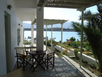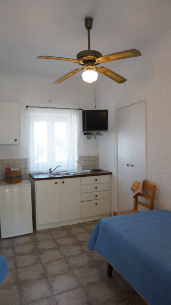 We have 1 standard room located on the ground floor of our premises. It can accommodate 1-2 persons and there are 2 single beds (with new Elite Strom mattresses). Equipped with fan, private bathroom with shower, refrigerator, coffee maker and kettle, kitchen utensils, flat TV and access to the veranda and the sea view.